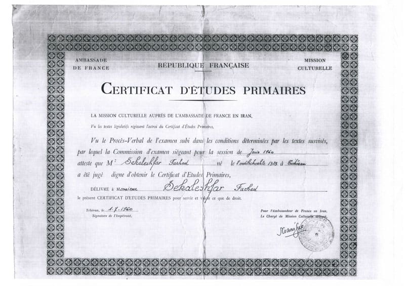 سال ۱۳۳۷ چون تعداد زیادی از هم دوره های من کلاس ششم فرانسه را مردود شدند برای ما کلاس هفتم جدید فارسی را شروع کردند که تمام درس هارا به زبان فارسی تدریس می شد ولی صبح ها هنوز کلاس ششم فرانسه را ادامه می دادیم تا بتوانیم این تصدیق نهایی را بگیریم.